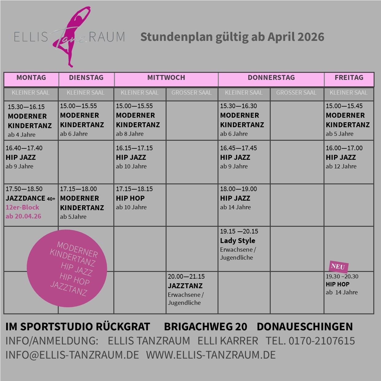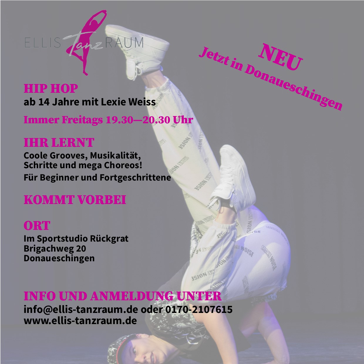 IM SPORTSTUDIO RÜCKGRAT BRIGACHWEG 20 IN DONAUESCHINGEN INFO/ANMELDUNG: ELLIS TANZRAUM ELLI KARRER TEL. 0170-2107615 |